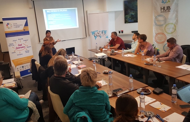 A.D.E.L. Szlovákia 2 ismertető eseményt szervezett, hogy a helyi sportok érdekeltjeit a #GoodGovernanceSport projekt tevékenységeinek eredményeiről tájékoztassa. Az első eseményt 2019. március 22-én rendezték meg, és a sportklubok, szövetségek és a szlovák sportminisztérium 13 képviselője gyűlt össze. A második ismeretterjesztő eseményt 2019. április 30-ára szervezték, és az eseményen 17 résztvevő vett részt klubokból, sportegyesületekből és önkormányzatokból. Bemutatták a projektet, annak eredményeit, az első kutatás eredményeit és tevékenységeit. A partnerszervezet információkat osztott meg a résztvevőkkel az Erasmus + Sport programról, a finanszírozás megszerzésének lehetőségeiről és korábbi projektek példáiról. A rendezvény során érdekes beszélgetések zajlottak a jó kormányzás témájában, összehasonlították a szlovákiai és más országok helyzetét, de tervezték a jövőbeni együttműködést és kezdeményezéseket is ezen a területen.